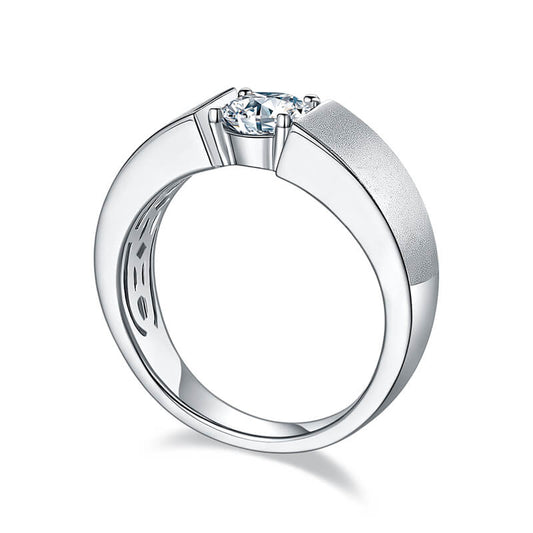 • 925 Silver Moissanite Men's Wedding Ring Frosted Surface -JM0017
