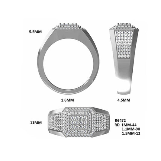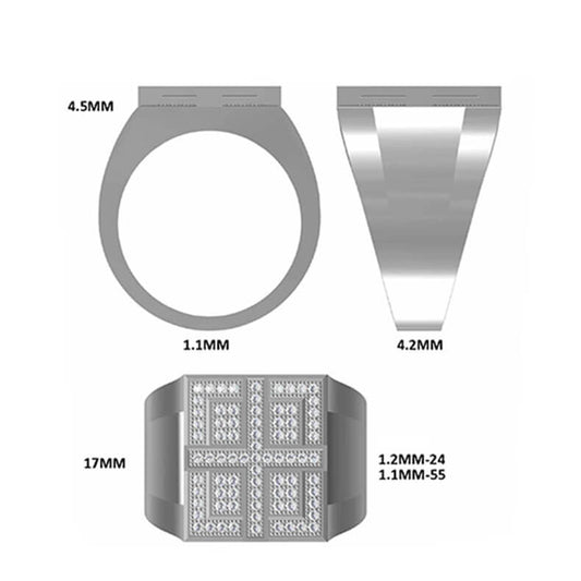 Luxury 925 Silver Moissanite Men Ring Square Design 1ct -JM0006