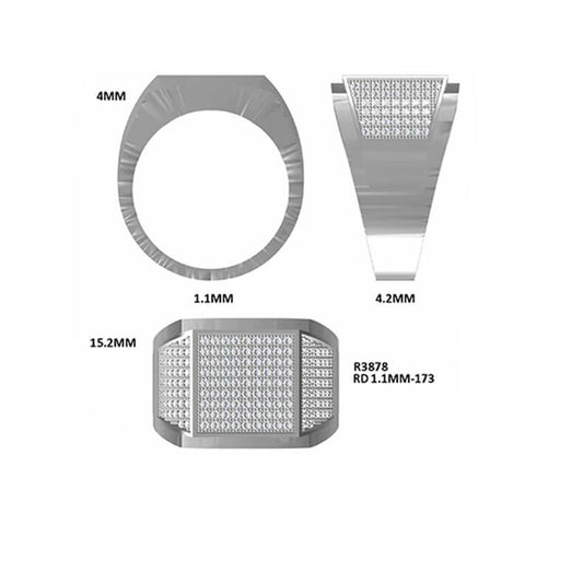 Luxury 925 silver Moissanite Men Ring Flat Square Design 1ct -JW0005