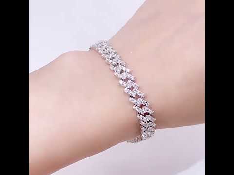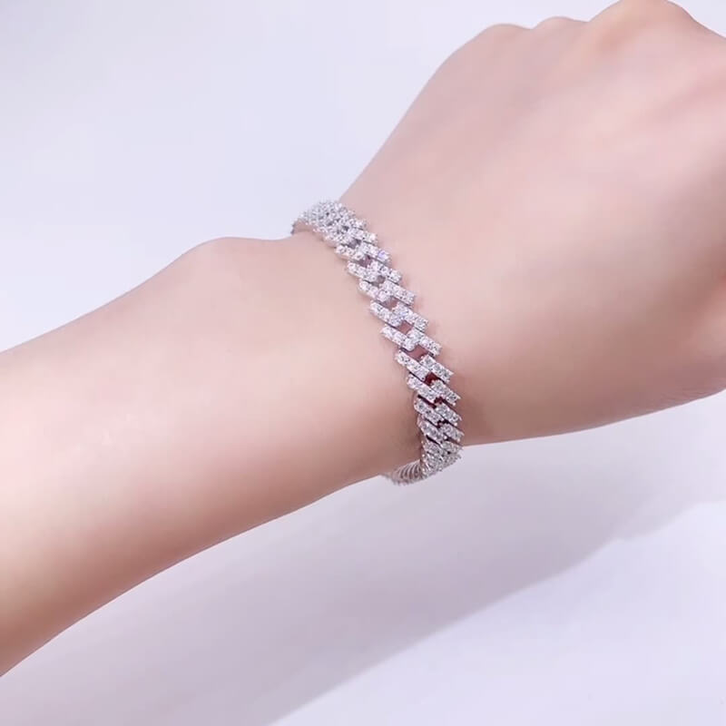 8mm Moissanite Cuban Bracelet One Row 3 Stones