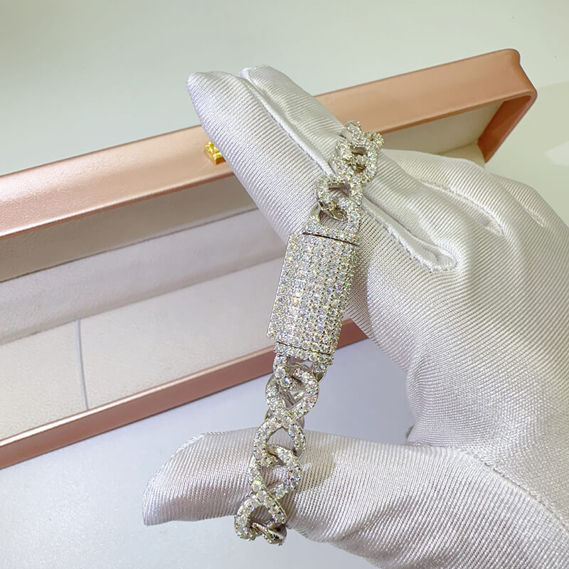 925 silver 8 shape design 10mm Moissanite Cuban Bracelet