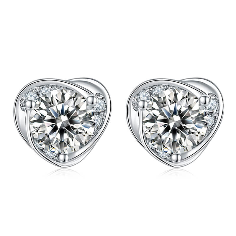 Classic Heart Shape Moissanite Stud Earring with Tiny Diamond Around