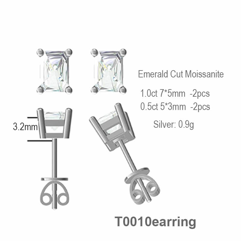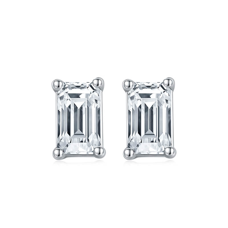 Classic Rectangle Shape Emerald Cut Moissanite Stud Earring