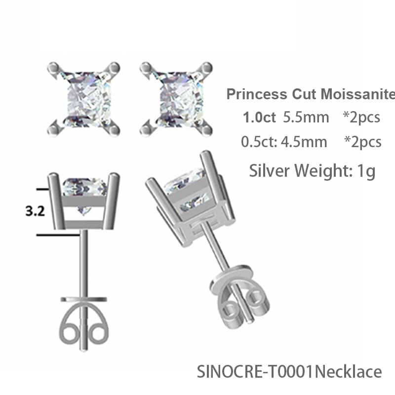 Classic Square Shape Princess Cut Moissanite Stud Earring