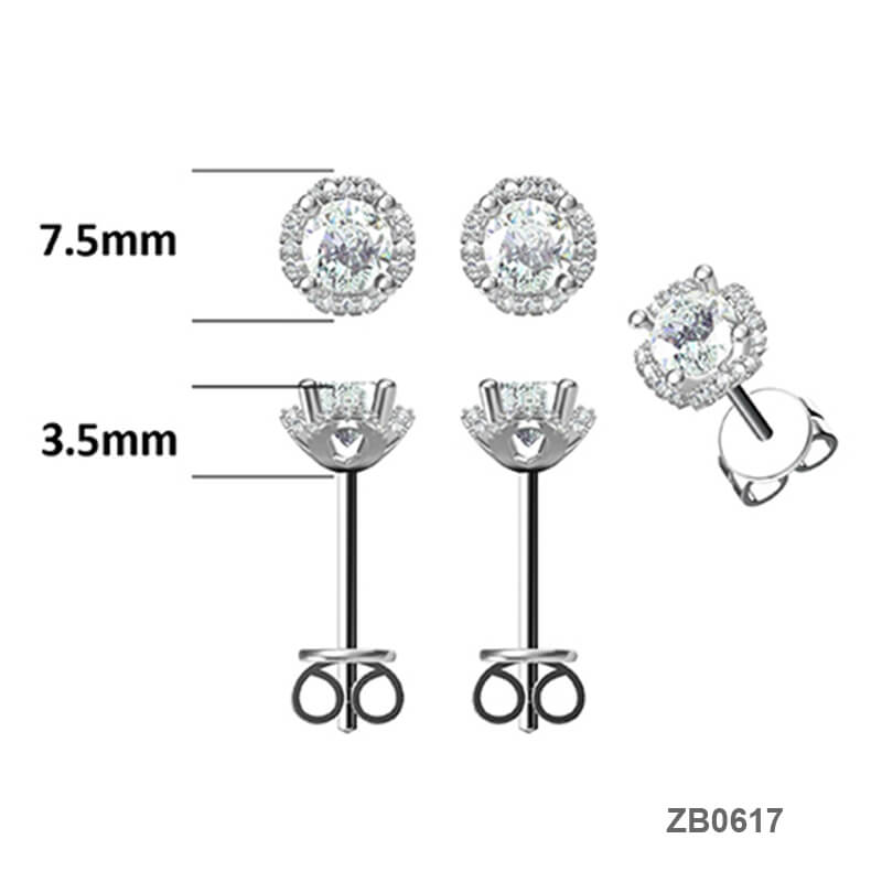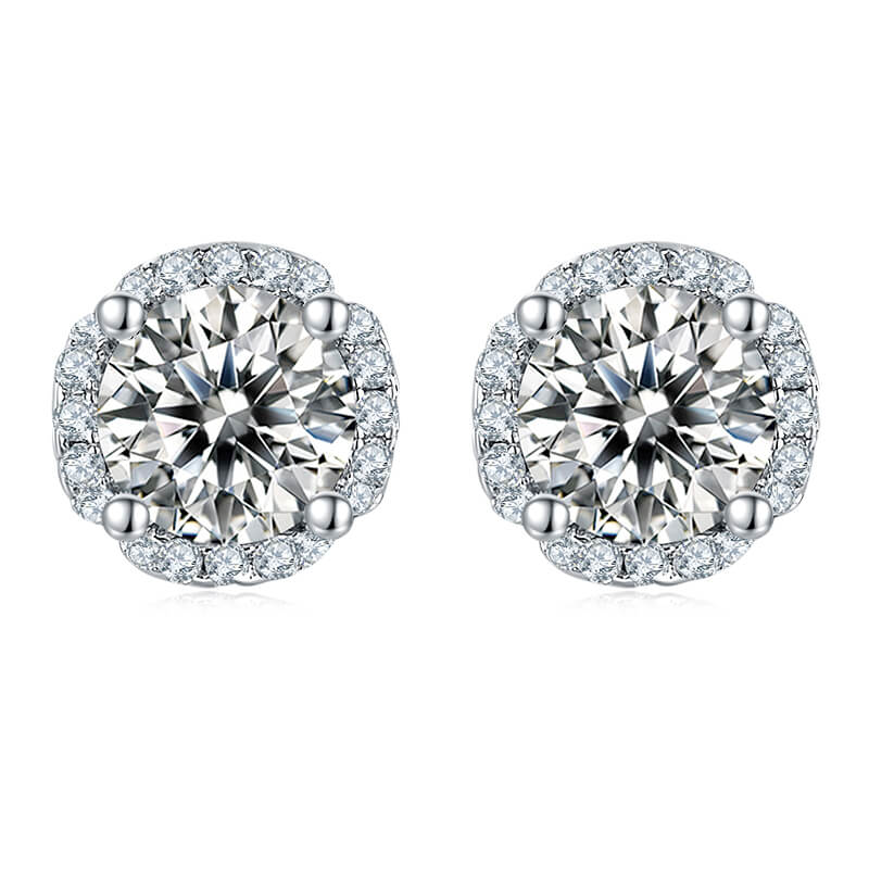 Fashion Round Moissanite Stud Earring with Tiny Diamond Around