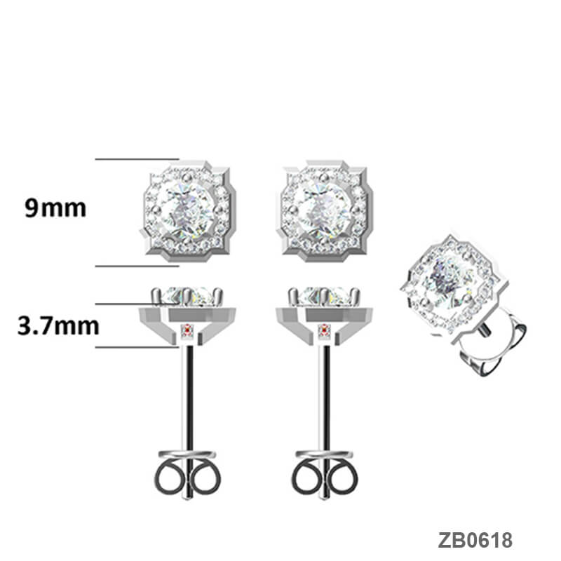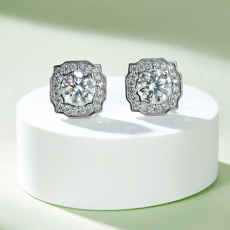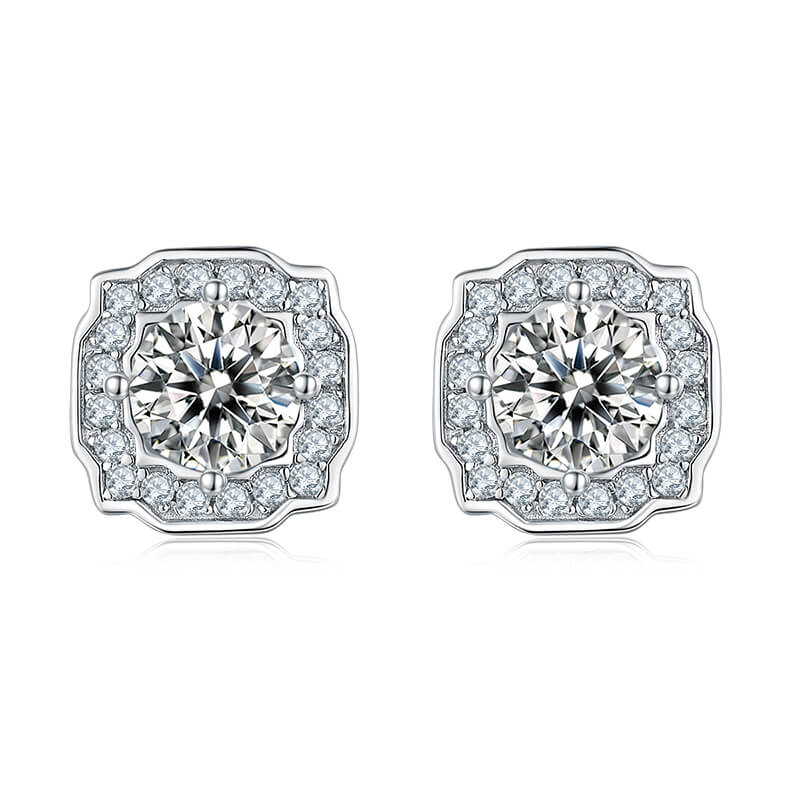 Fashion Square Shape Moissanite Stud Earring with Tiny Diamond Around