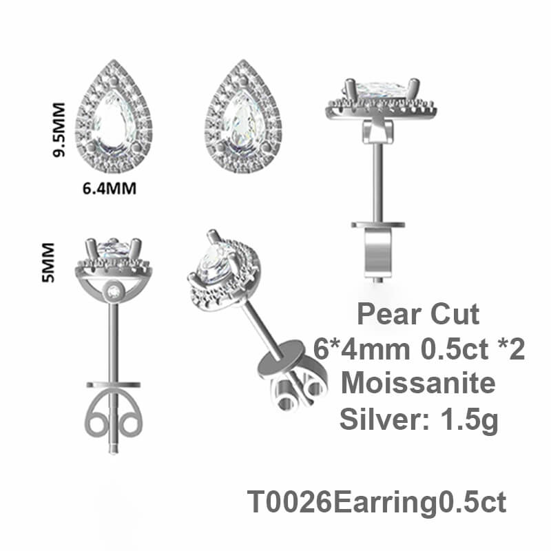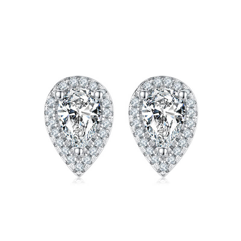 Fine Water Drop Shape Pear Cut Moissanite Stud Earring with layer Tiny Diamonds Around
