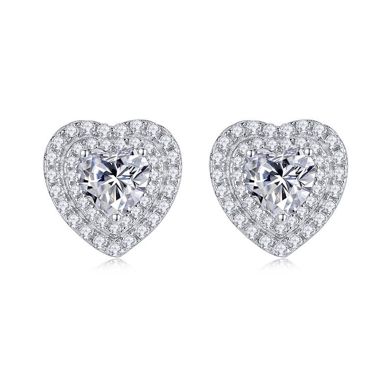 Luxury Heart Shape Heart Cut Moissanite Stud Earring with 2layers Tiny Diamonds Around