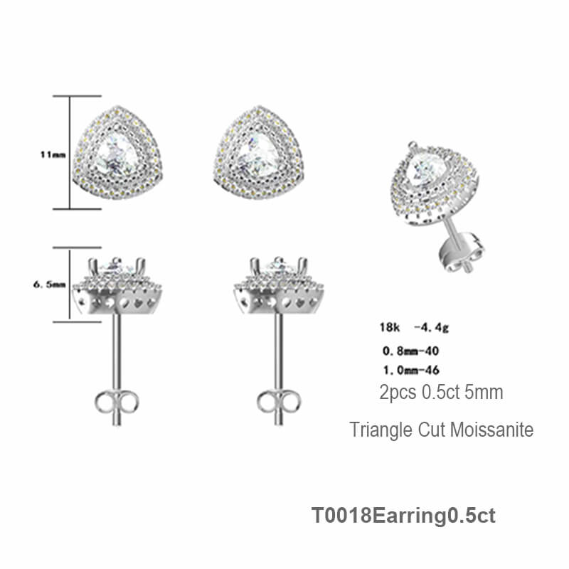 Luxury Trigonal Shape Triangle Cut Moissanite Stud Earring with 2layers Tiny Diamonds Around