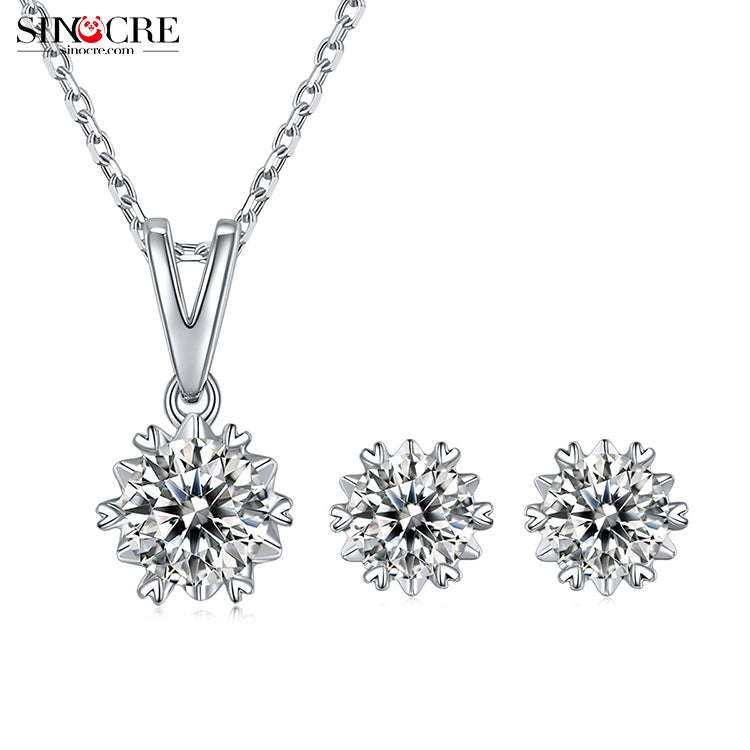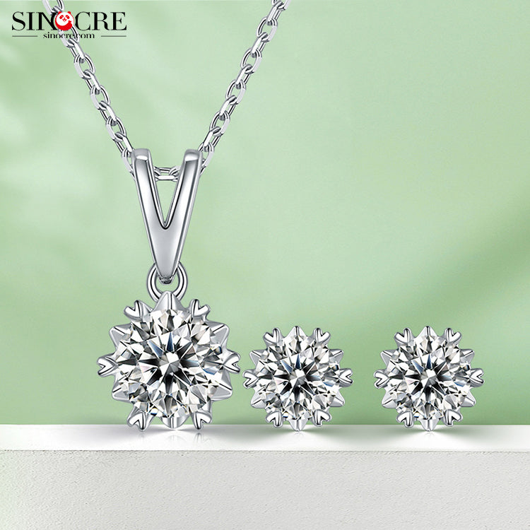 Classic Jewelry Set Snowflake Design S925 Silver Moissanite Pendant Necklace and Earring