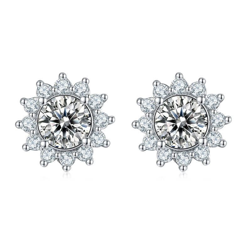 Sunflower Design Round Cut Moissanite Stud Earring