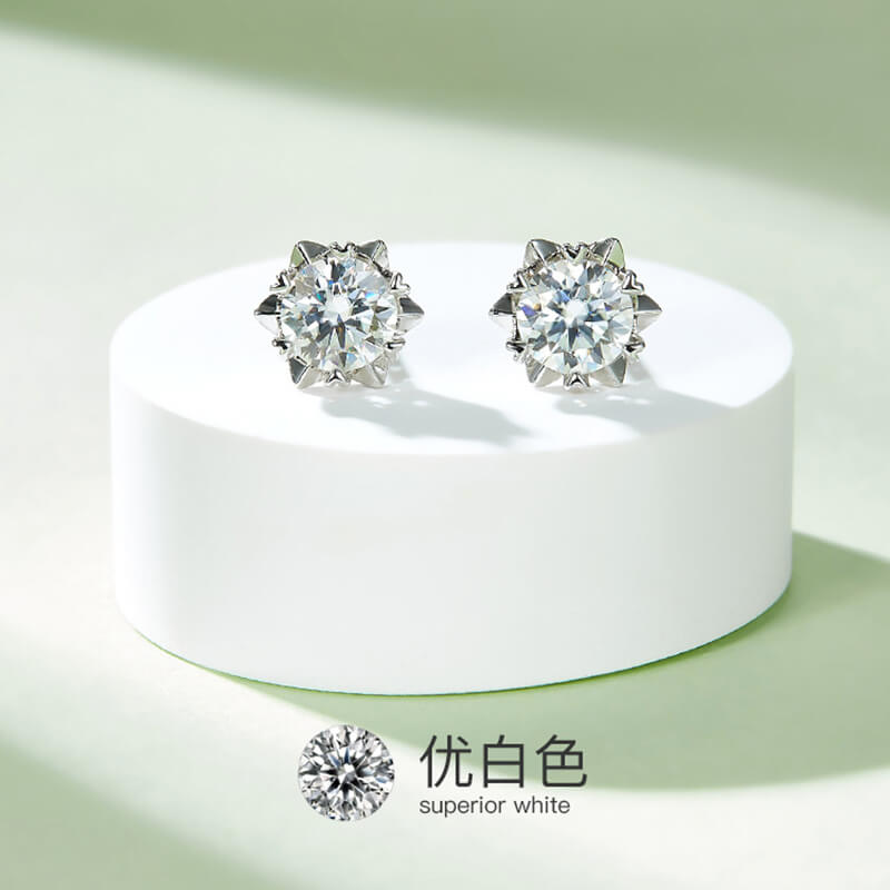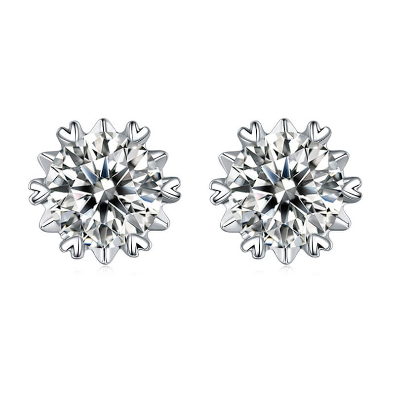 Classic Snowflake Design Round Cut Moissanite Stud Earring
